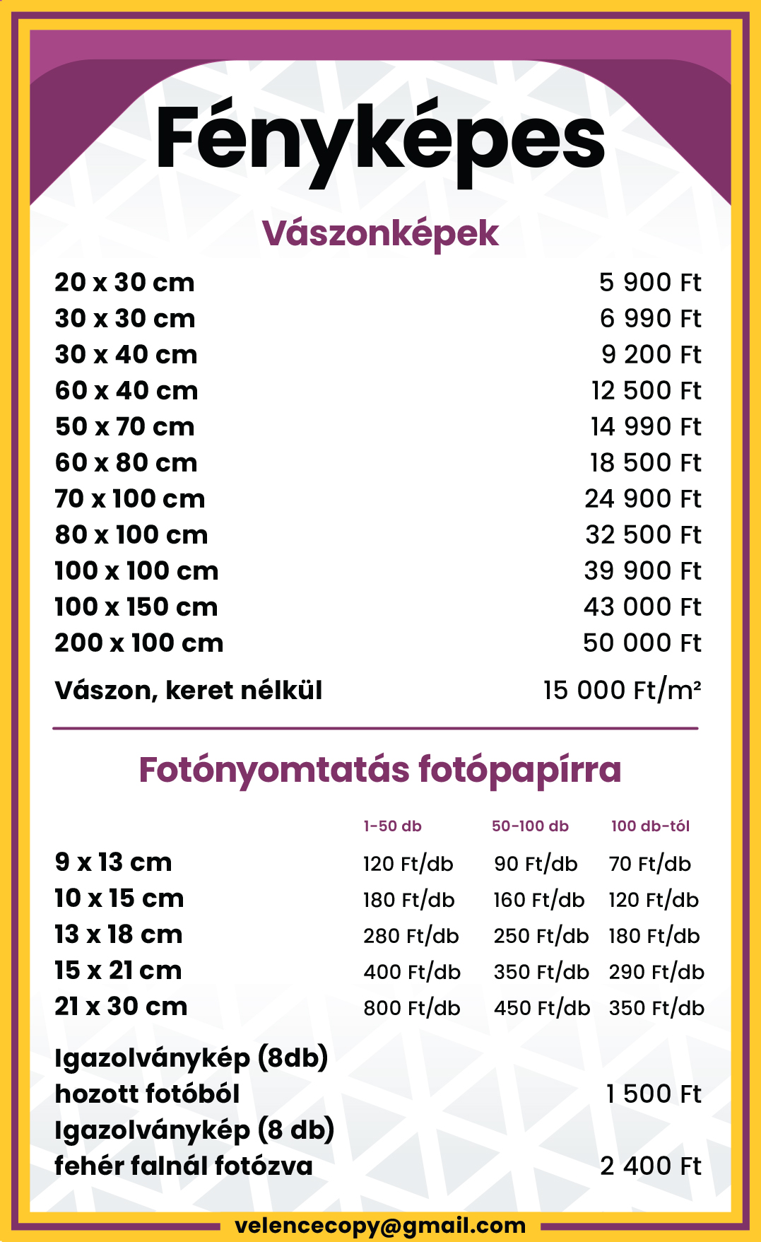 Fotóidat profi fotópapírra nyomtatjuk, élénk színekkel és tartós minőségben. Igazolványképet, családi fotót, portfóliót vagy nagyított posztert is készítünk, több méretben. Segítünk a vágásban, retusban, hogy a kép teljesen „készen legyen” nyomtatásra. Ha pendrive-on, telefonról vagy e-mailben hozod a fájlt, mi megoldjuk.